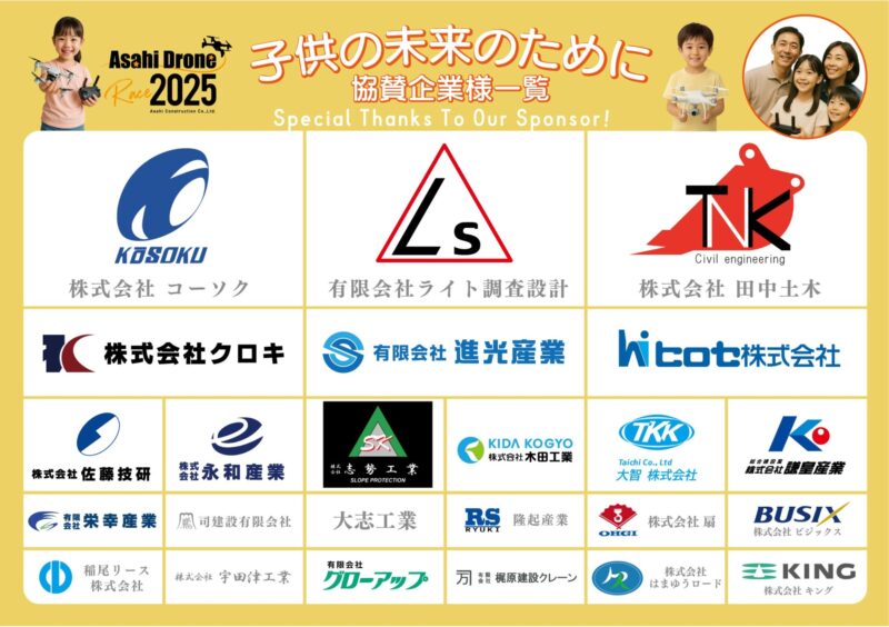 Asahi Drone Race 2025、開催に際し 24社の企業様がお力添えしてくださいました!