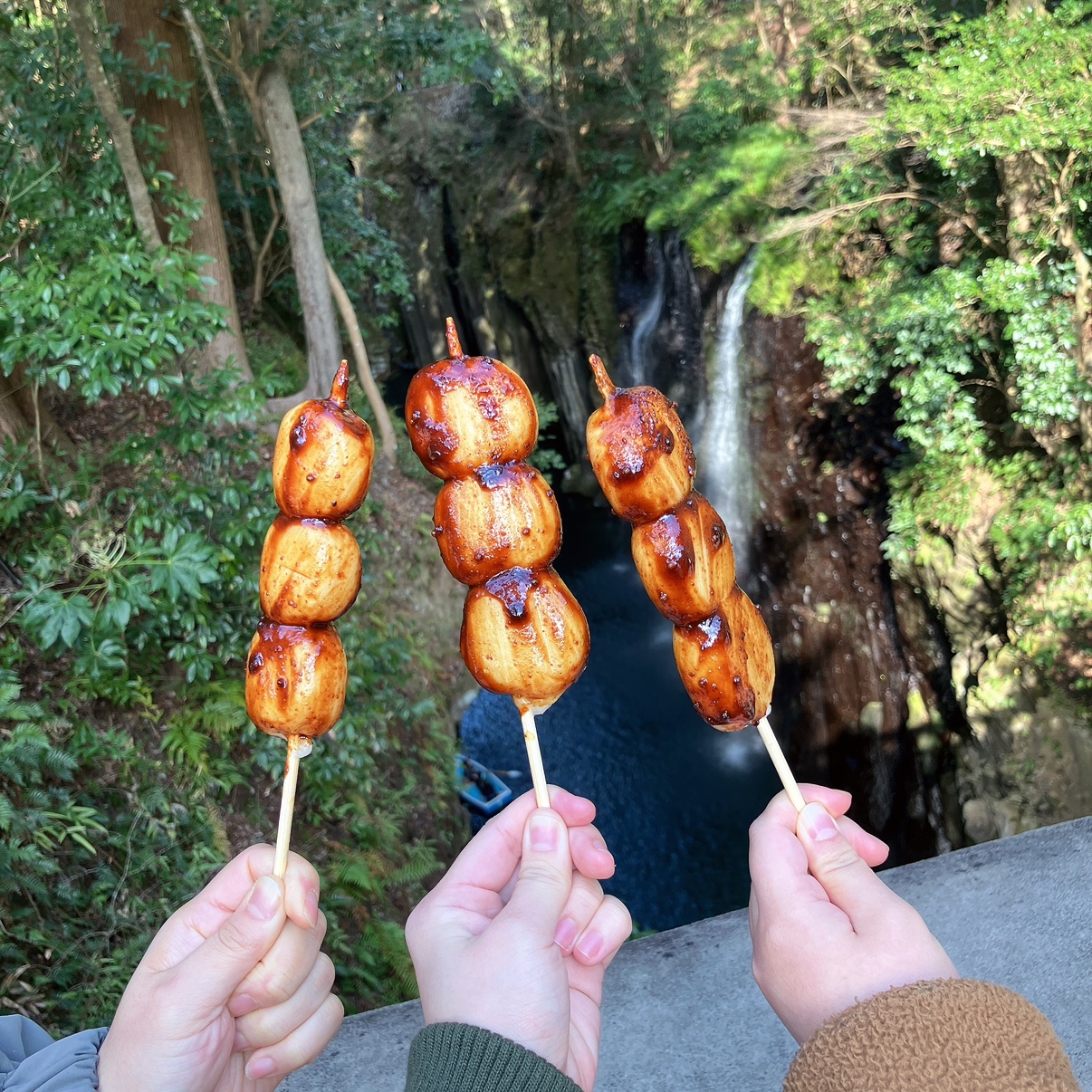 また、高千穂峡にはお店もありはじめてくるみ味噌のお団子をいただきました。とても美味しかったです。