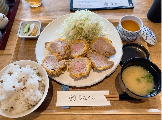 熊本県にあるとんかつ屋さんで食事をしてきました。黒豚ロースかつは衣がサクサク、中は驚くほどジューシーで感動!特製ソースとの相性も抜群で、ごはんが止まらない一品でした。キャベツや味噌汁もおかわり自由で大満足。店内も落ち着いた雰囲気で、また行きたくなる一軒でした。