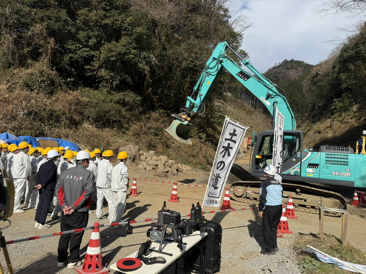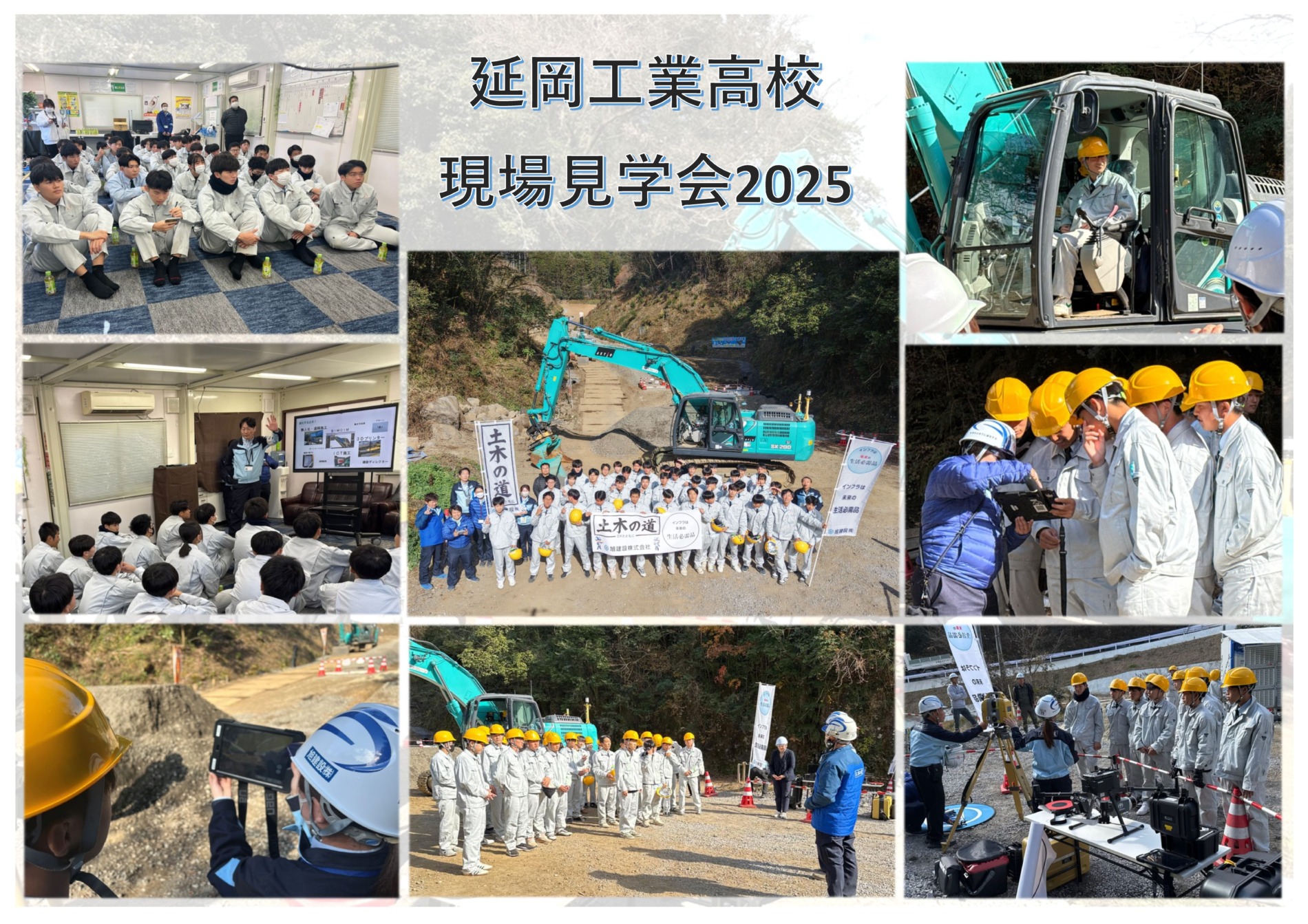 2025年12月16日12/11延岡工業高校1年生の現場見学会( ICT施工特別授業)開催!延岡工業高校1年生を対象とした現場見学会を開催しました!内容はICT(情報化施工)に関する座学から始まり、実際にMCチルトローテーターバックホウを見学他にも当社で使用している様々な機器を実際に使用して体験してもらいました(^^)